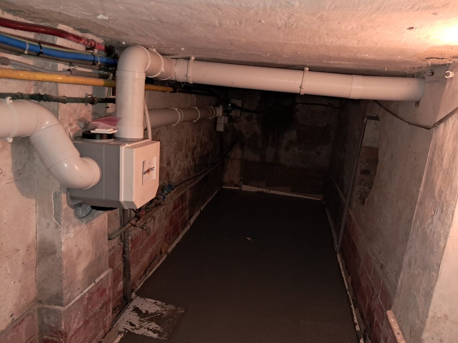 Tijdens een recent werfbezoek Dendermonde stond een bijzonder project centraal: vloerdrainage gecombineerd met het innovatieve XTRair-ventilatiesysteem voor kelderruimtes. Onze vochtexperts stonden voor een flinke uitdaging: een woning net buiten het stadscentrum kampte al jaren met terugkerende vochtproblemen, ondanks verwoede pogingen met ‘droogoplossingen'. Wat bleek? De kern van het probleem lag diep in de keldervloer en een gebrekkige luchtcirculatie.